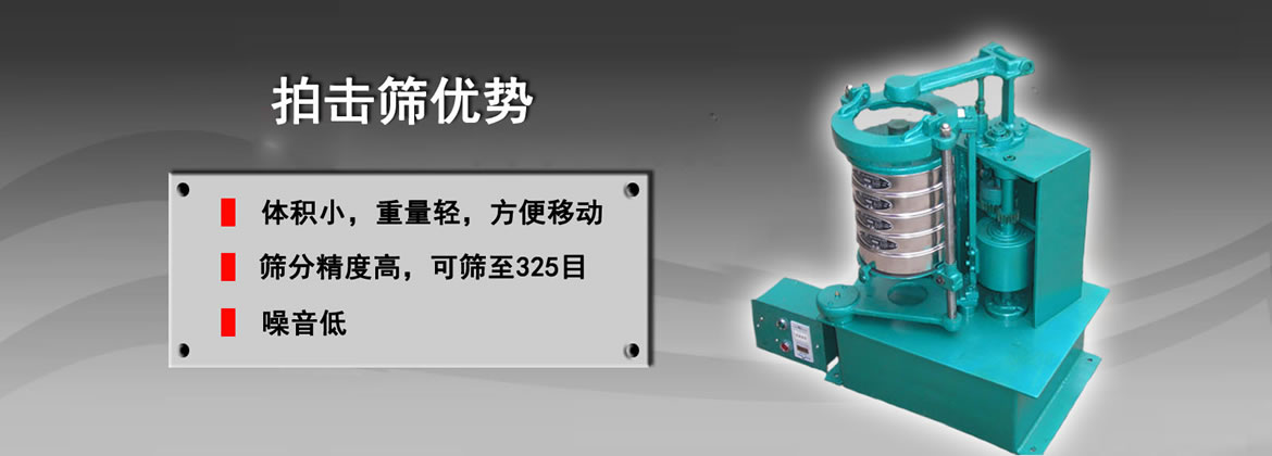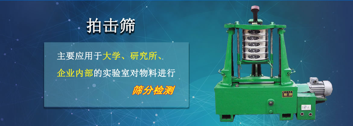 拍擊式振動篩電機通過同步帶動齒輪變速后使主軸轉動,主軸帶動偏心輪使滑板帶動設備做往復運動,同時帶動頂桿轉動,頂擊拍錘,在往復運動中拍錘拍擊篩框,小于篩孔的物料輕松即可通過篩網,大于篩孔的物料將留在篩網上層,通過拍擊原理而完成的篩分作業過程。拍擊篩分機是實險室中針對粘性、潮濕的物料較佳的實驗測量設備。