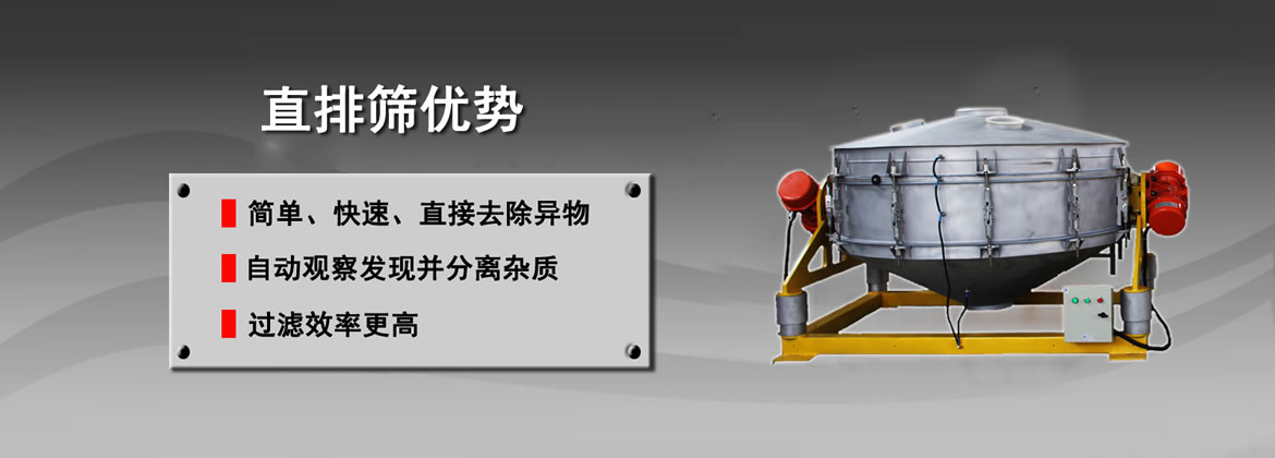 直排篩是在旋振篩的基礎上設計的一種篩分過濾篩,通過兩臺相同大小的振動電機對稱的安裝在篩體的兩側,和旋振篩一樣,電機的上下兩端都安裝有偏心重錘,電機在轉動時產生三次元運動作用于篩面從而達成對物料的篩分作業(yè),同時出料口為直排式設計來提高排料的速度。