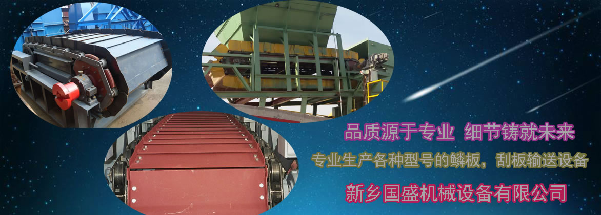板式給料機在工作時傳動裝置的電動機經過減速機、聯軸器的帶動,使主驅動軸旋轉,重疊的輸送機鱗板固定在兩邊的鏈條上,兩個主動鏈輪帶動兩邊鏈條,鱗板上的托輪通過機架上的導軌導向,通過鏈條的傳動將鱗板上的物料輸送到卸料處。